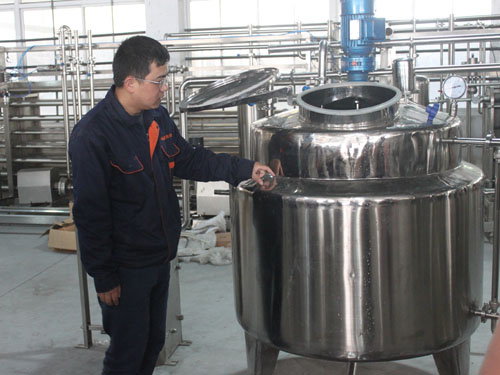 milk production line including water treatment, CIP cleaning system, blending system, standard section, filling and sterilization, it also have some auxiliary facilities such as boiler, air compressor and so on, all of these equipment ensures the taste of milk and extend the product shelf life. Through the training, the new colleague have a directly impression of company’s products, the tough colleague have deepen understanding of beverage production line.