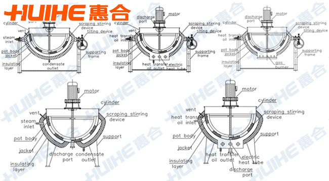 Jacketed kettle with agitator usual use for porridge, invert sugar , boil the chicken, fried a dish and the material has the consistency.