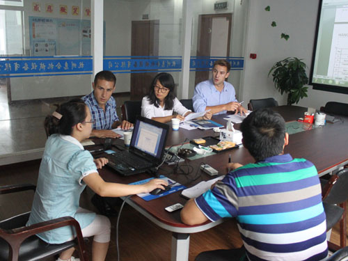 2014年9月11日,美國客戶因業(yè)務(wù)擴展需要訂制全套爆爆蛋生產(chǎn)線設(shè)備,來我公司與銷售人員和工程師進(jìn)行具體細(xì)節(jié)的洽談。