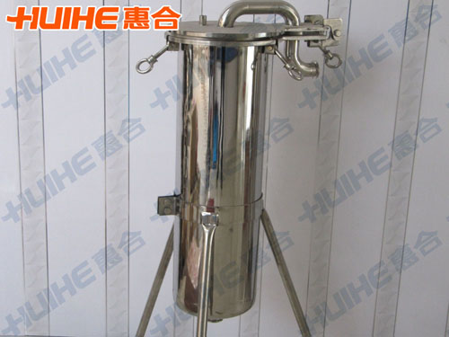 袋式過(guò)濾器或布袋過(guò)濾器是一種壓力式過(guò)濾裝置,主要有過(guò)濾筒體、過(guò)濾筒蓋和快開(kāi)機(jī)構(gòu)、不銹鋼濾袋加強(qiáng)網(wǎng)等主要部件組成,濾液由過(guò)濾機(jī)外殼的旁側(cè)入口管流入濾袋,濾袋本身是裝置在加強(qiáng)網(wǎng)籃內(nèi),液體滲透過(guò)所需要細(xì)度等級(jí)的濾袋獲得合格的濾液,雜質(zhì)顆粒被濾袋攔截。這種過(guò)濾器更換濾袋方便。